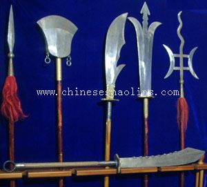 Weapons:Shaolin staff is very important part in shaolin weapon,they are Shao Huo Staff, Qi Mei staff, Liu He stick, Yun Yang stick,Pai stick, Monkey staf, Da Mo staff ect.Spear, 27 famous spear, 33 famous spear, Six-he spear,Yang style spear, Luo style spear,ect. and single Broadsword,Mei Hu Broadsword,Gun Tang,Qian Kun,Seven star sword,tiger head hook, nine-sections whip,etc.and other techniques locking joints, pressing points, soft Chi Gong, Hard Qi Gong, iron sand palm and shaolin 72 techinques,etc.